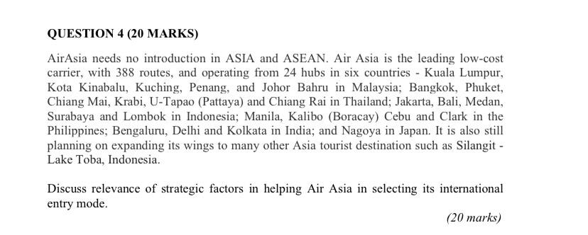 Solved Question 4 20 Marks Airasia Needs No Introduction Chegg Com